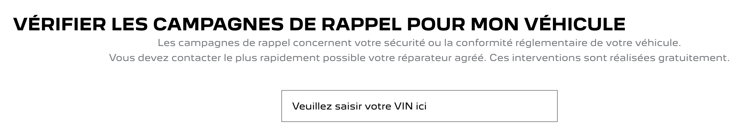 Vous pourrez y renseigner votre numéro de châssis (VIN) et vérifier si votre véhicule est concerné (exemple ci-dessous pour la marque Peugeot)