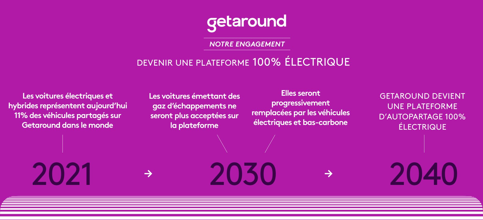 L'engagement de Getaround en faveur d'une plateforme sans aucune voiture à moteur thermique s'aligne sur l'objectif défini par les gouvernements de limiter l’utilisation et la vente de ces véhicules dans le but d’atteindre zéro émission nette d’ici 2050 comme stipulé par l’accord de Paris lors de la COP21. La Commission Européenne a également proposé l’interdiction de la vente de voitures essence et diesel d’ici 2035.